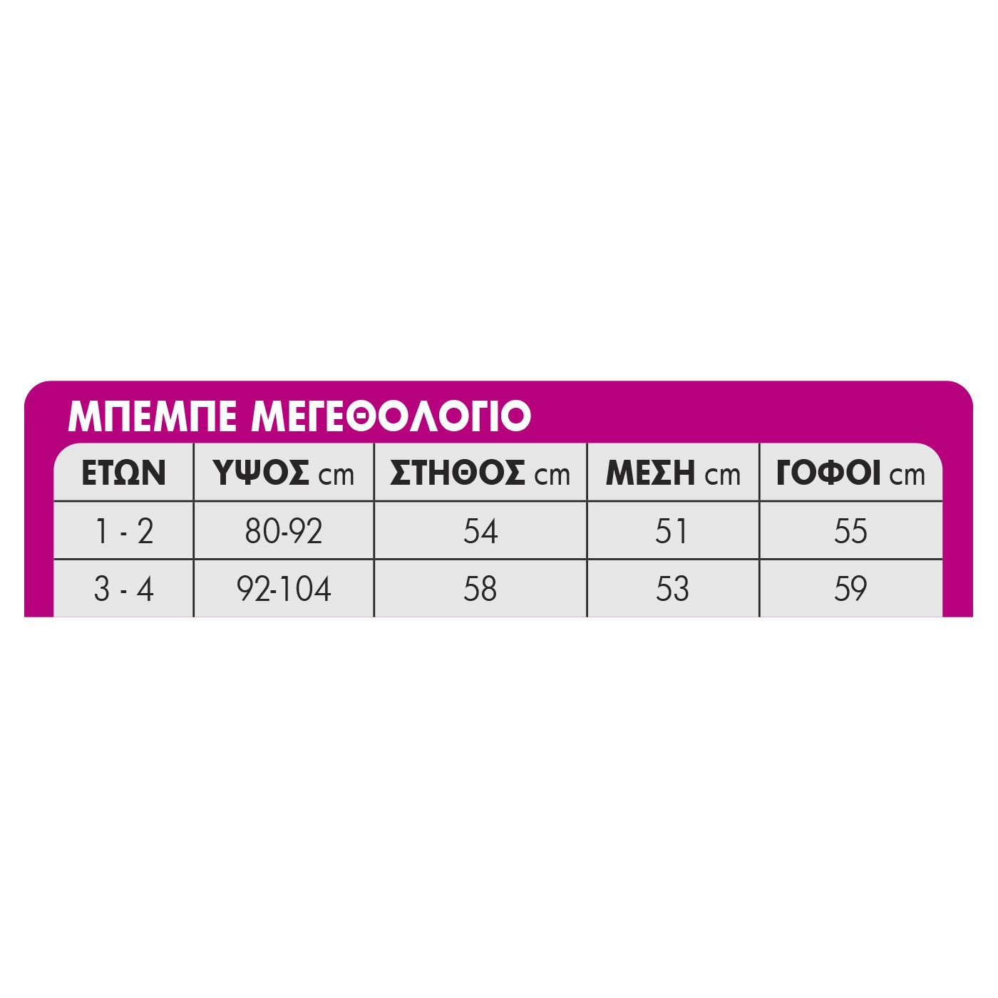 | Μέγεθος | 1-2 ετών,3-4 ετών |