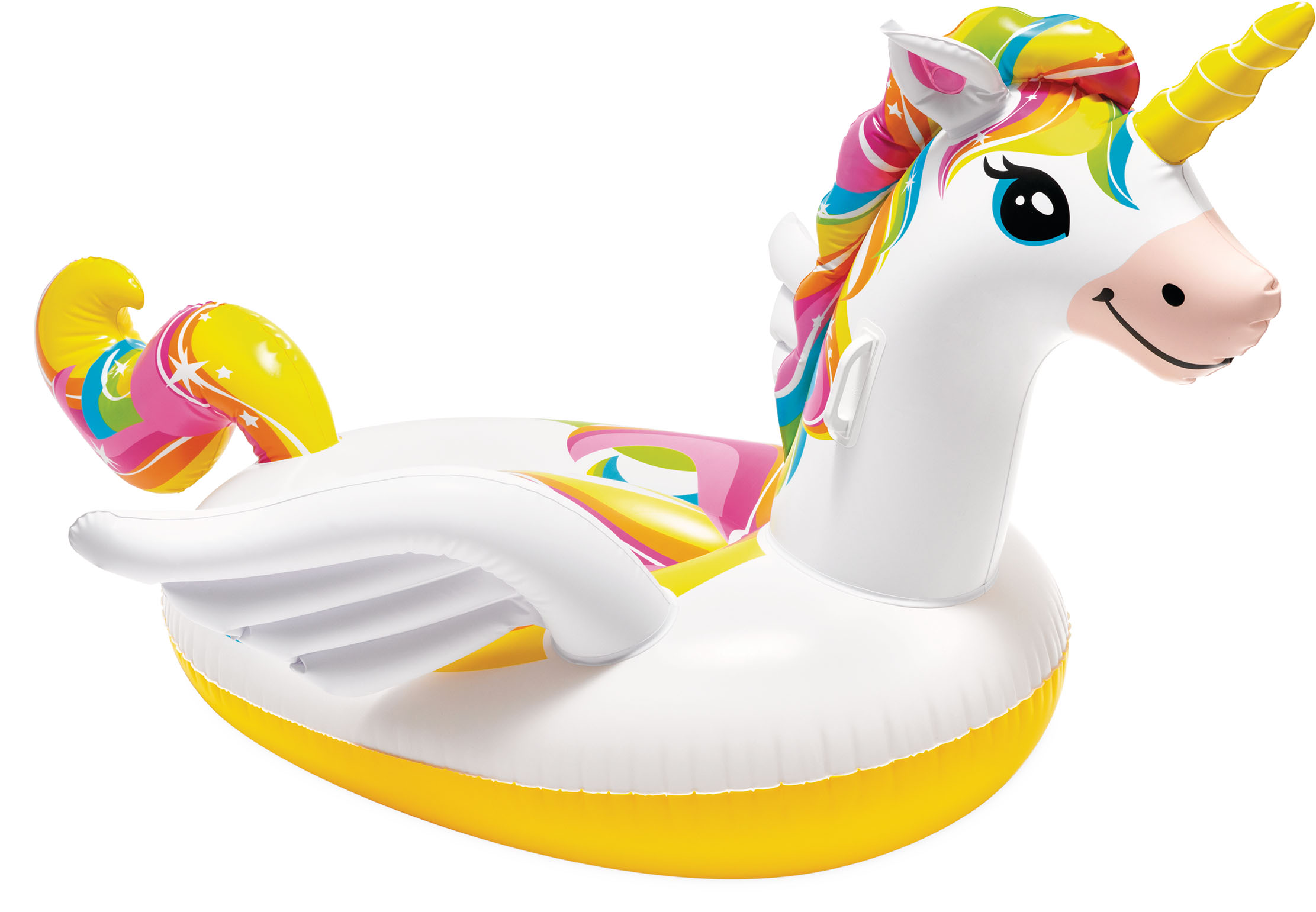 Οι μονόκεροι είναι από τα πιο όμορφα μυθικά πλάσματα, σύμβολο καλοσύνης με μία όμορφη πολύχρωμη χαίτη. Προσθέστε μια ευχάριστη νότα στο μπάνιο σας, προσθέτοντας το Μονόκερο της Intex. Περάστε όμορφες στιγμές χαλάρωσης και κάντε τις βόλτες σας στο νερό πάνω σε αυτό το όμορφο φουσκωτό. Περιλαμβάνει βαριάς κατασκευής χερούλια για να μπορείτε να έχετε τον έλεγχο του φουσκωτού.