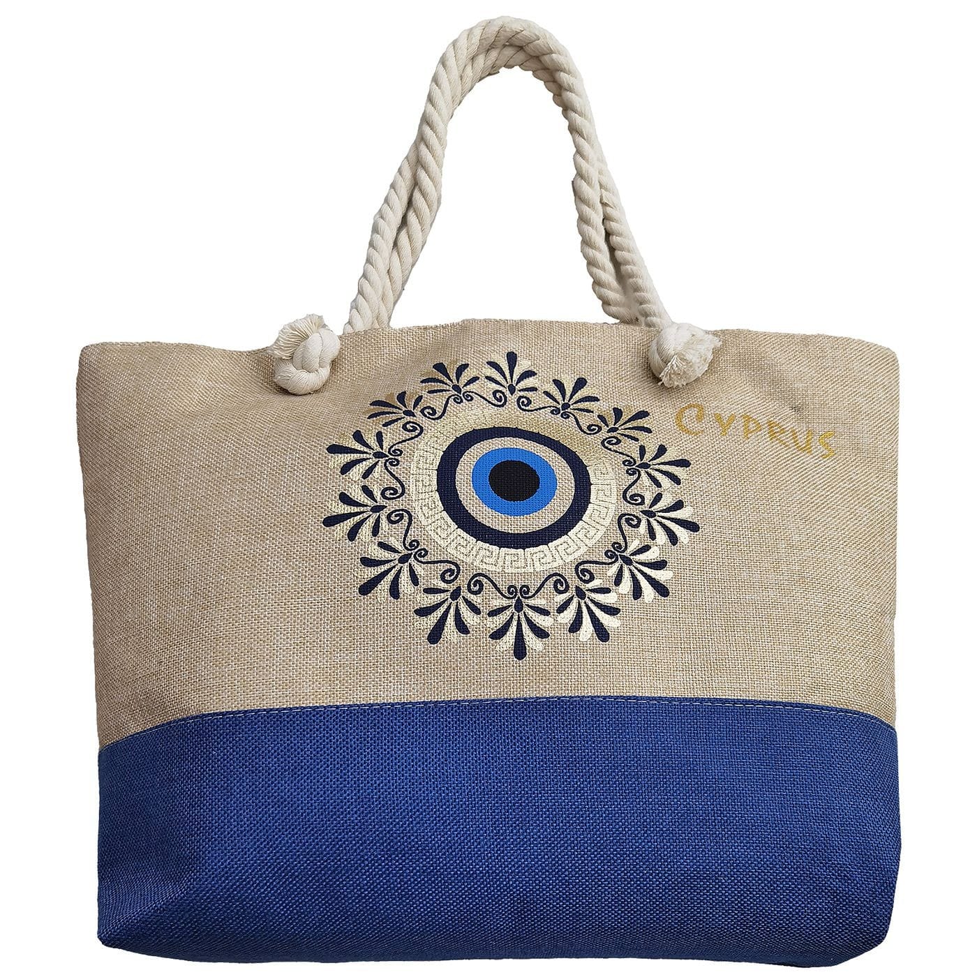 Τσάντα Παραλίας Λινάτσα με Μάτι Μαϊανδρο 54x37x15cm SummerTiempo 623151 – (1ΤΕΜ) – (42-3131)