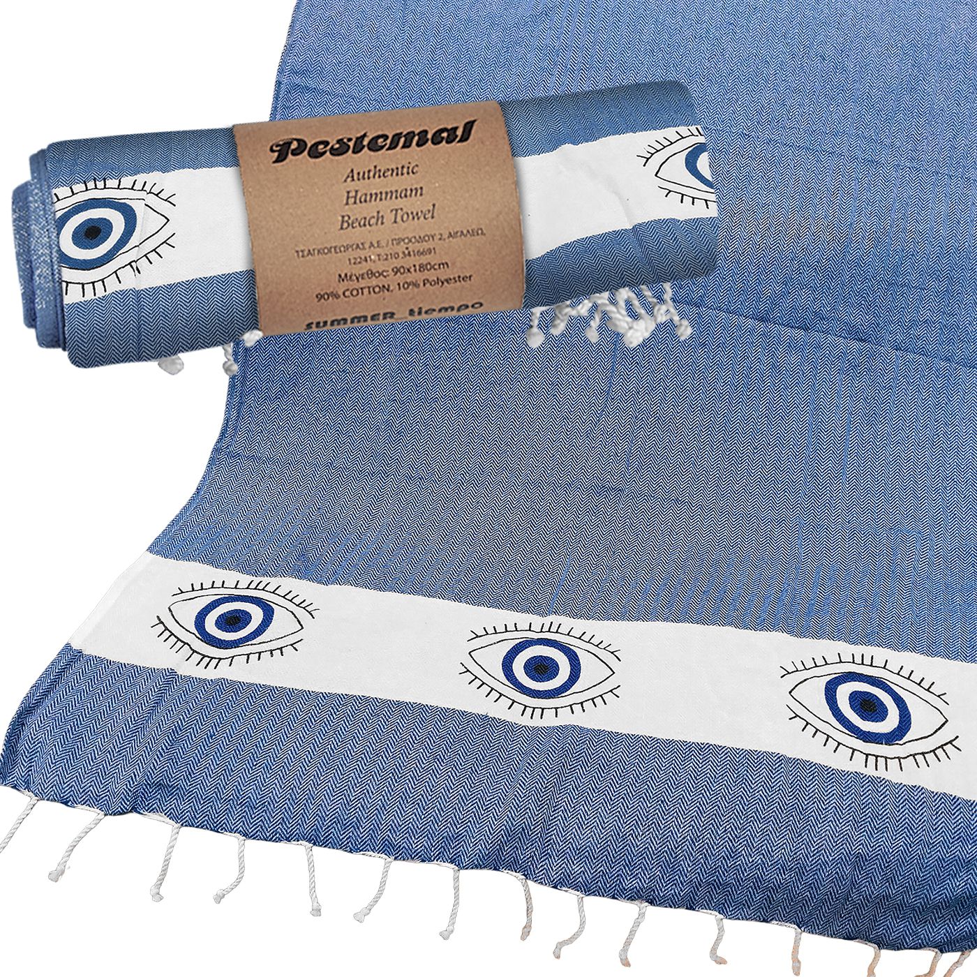 Πετσέτα Θαλάσσης Pestemal Ματάκια ~280g 90x180cm SummerTiempo 622273 – Μπλε σκ. – (1ΤΕΜ) – (42-2253)