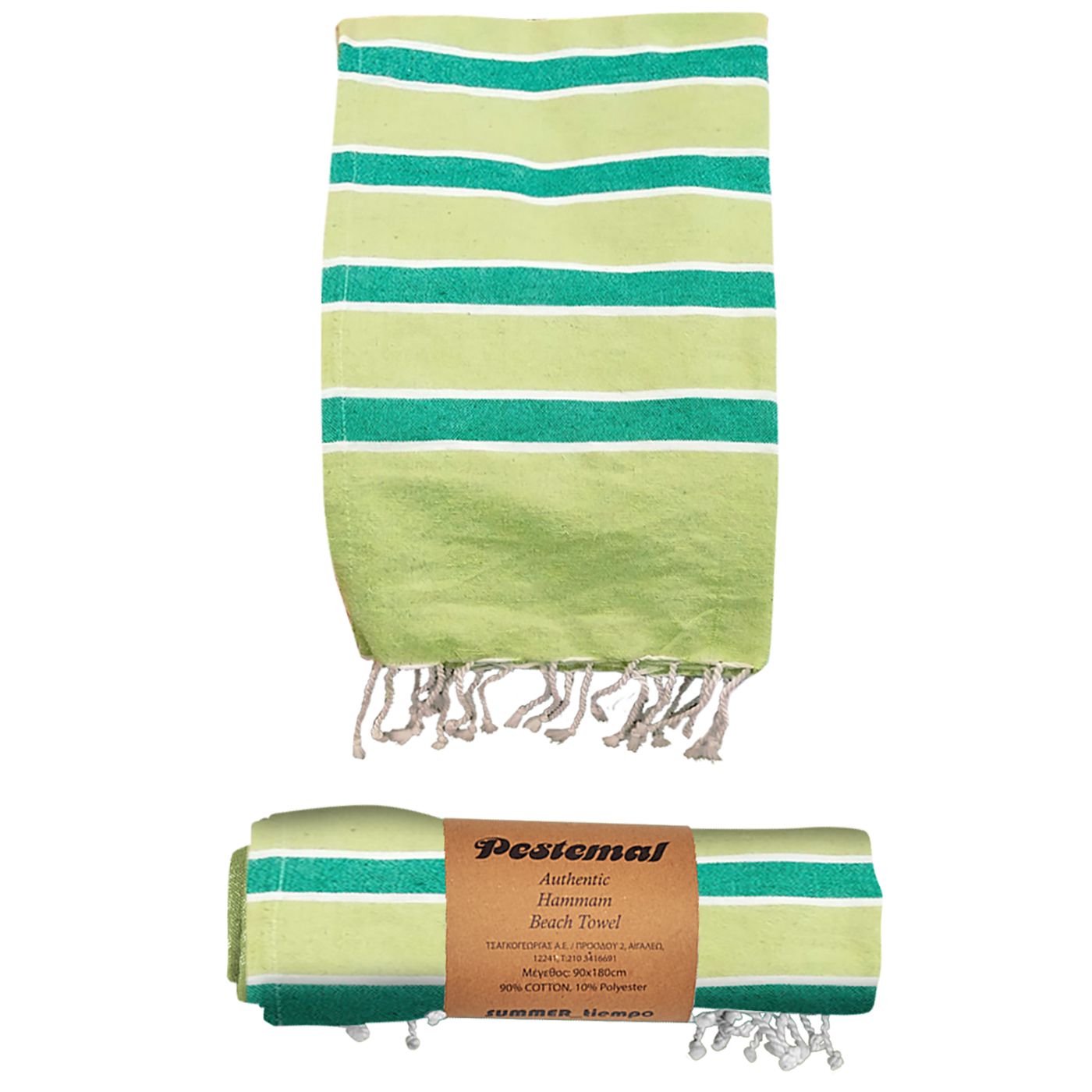Πετσέτα Θαλάσσης Pestemal με Χρωματιστές Ρίγες ~280g 90x180cm SummerTiempo 622967 – Λαχανί – (1ΤΕΜ) – (42-2947)