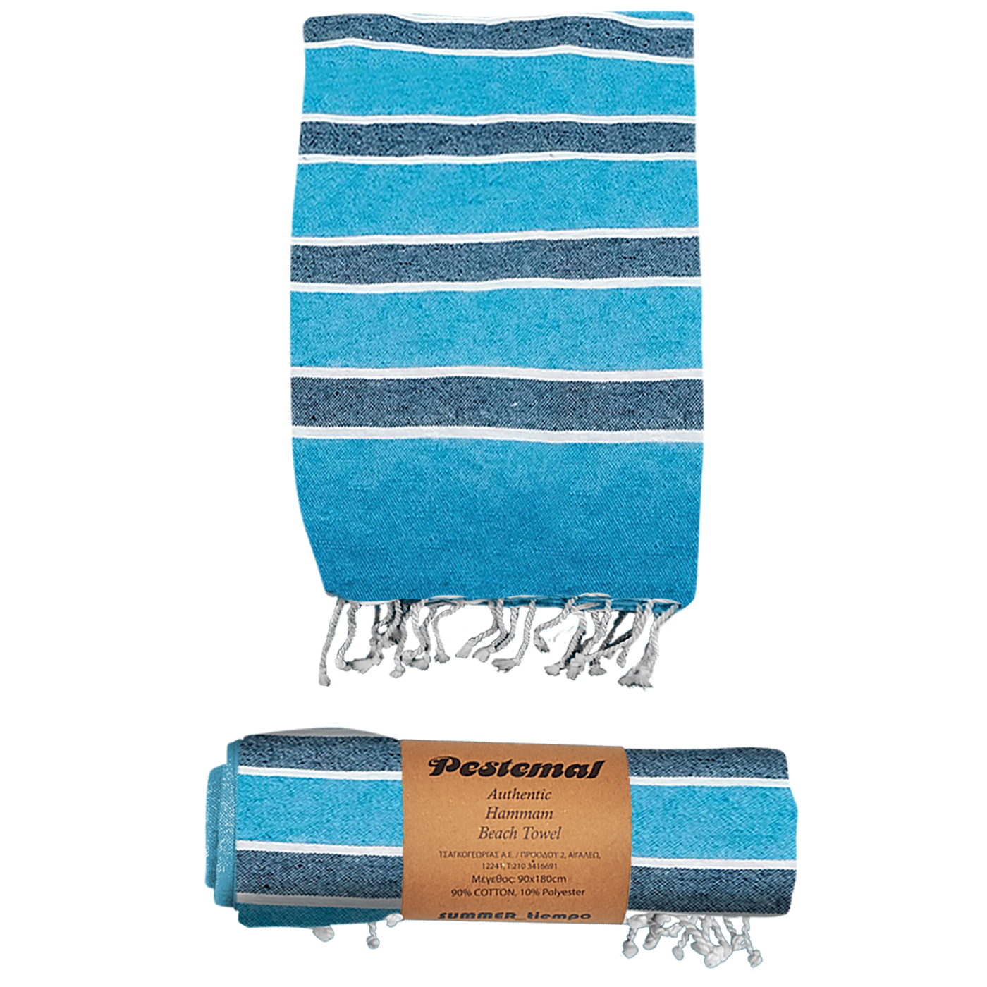 Πετσέτα Θαλάσσης Pestemal με Χρωματιστές Ρίγες ~280g 90x180cm SummerTiempo 622967 – Γαλάζιο – (1ΤΕΜ) – (42-2947)
