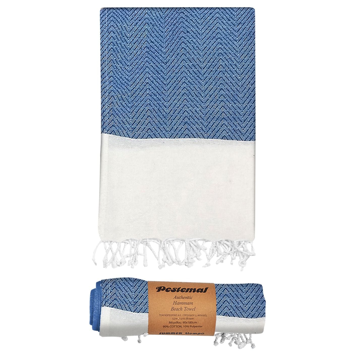 Πετσέτα Θαλάσσης Pestemal Ρόμβοι με Λευκή Φάσα ~280g 90x180cm SummerTiempo 622966 – Μπλε σκ. – (1ΤΕΜ) – (42-2946)