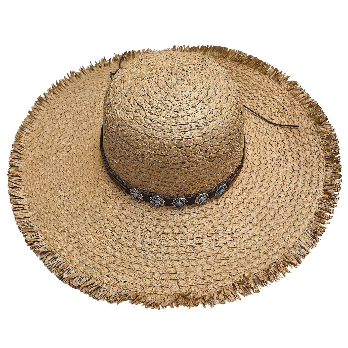 Καπέλο Ψαθόχαρτο με Κρόσια Δέρμα-Πετράδια ø42cm SummerTiempo 623351 – (1ΤΕΜ) – (42-3331)
