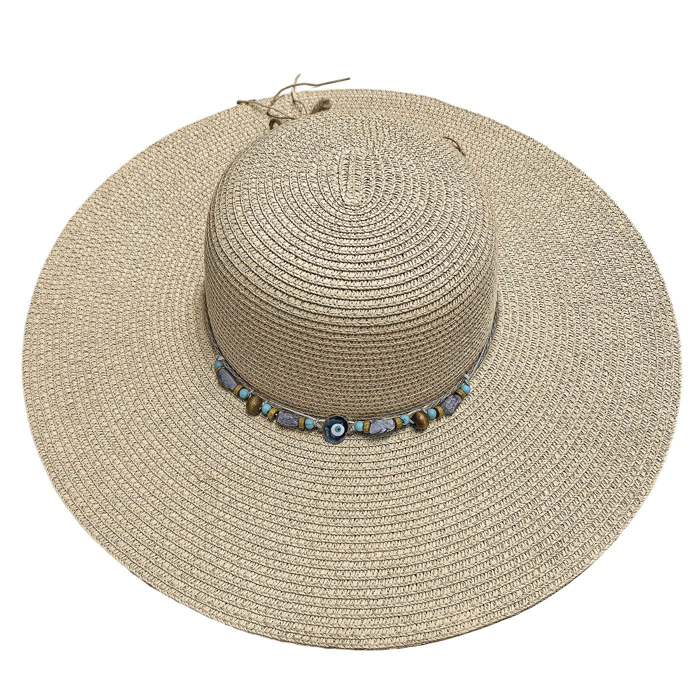 Καπέλο Ψαθόχαρτο Πετράδια Ματάκι Μπεζ ø42cm SummerTiempo 623350 – (1ΤΕΜ) – (42-3330)