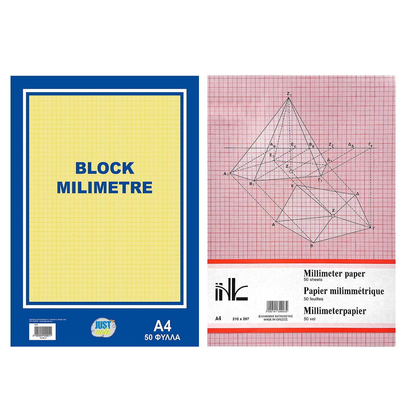 Μπλοκ Μιλιμετρέ 50φυλλο Α4 JustNote 3849 – Τυχαίο-Χρώμα-Σχέδιο-Επιλογή – (10ΤΕΜ) – (18-29)