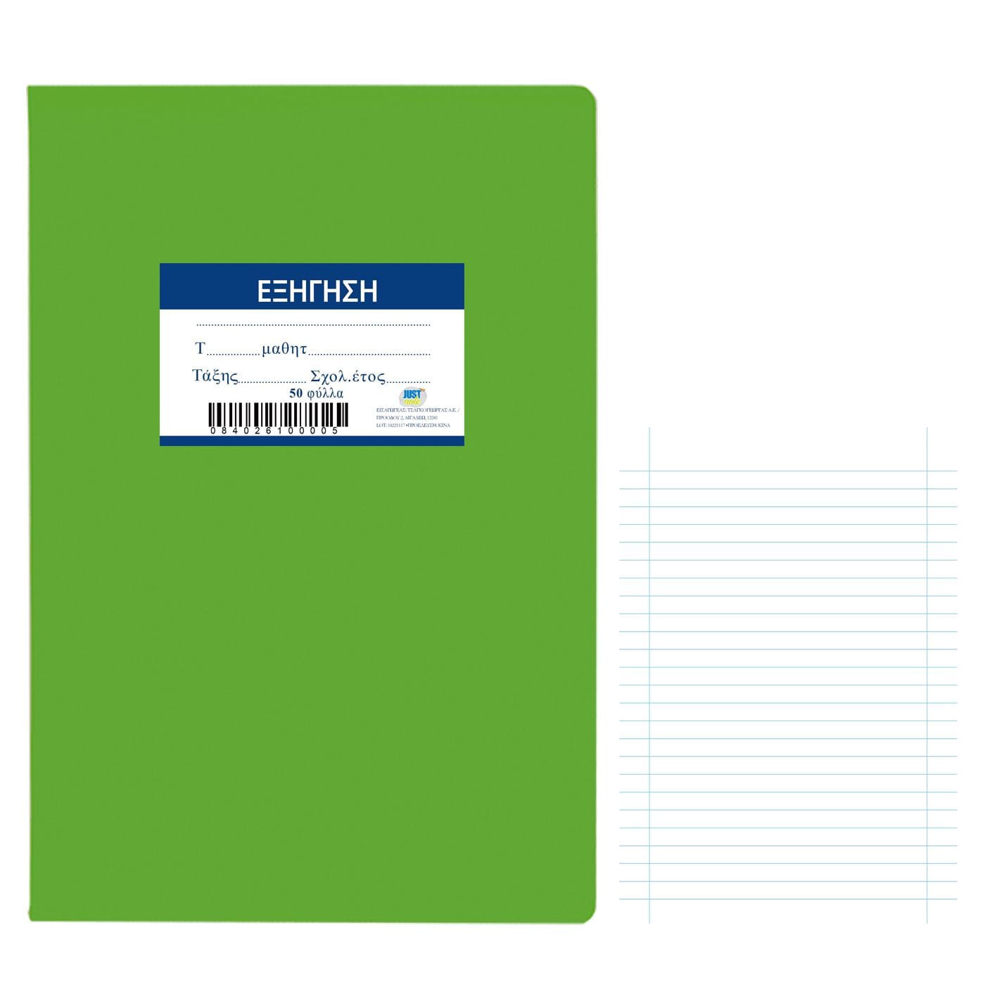 Τετράδιο Εξήγηση Πράσινο 50φυλλων 17x25cm JustNote 104281 – (10ΤΕΜ) – (84-261)