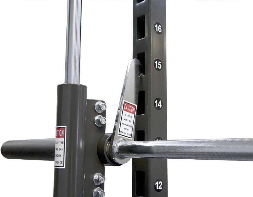 Με ένα απλό γύρισμα του καρπού σας ασφαλίστε την μπάρα σε ένα από τα 20 άγκιστρα που διαθέτει το Jones Freedom. Κάθε άγκιστρο απέχει 7,5 εκατοστά από το επόμενο. Τέλος για αποφυγή τραυματισμών υπάρχουν μεταβαλλόμενα στοπ ασφαλείας με ελατήρια. Έτσι ακόμα και αν σας φύγει η μπάρα θα σταματήσει εκεί που έχετε τοποθετήσει τα στοπ